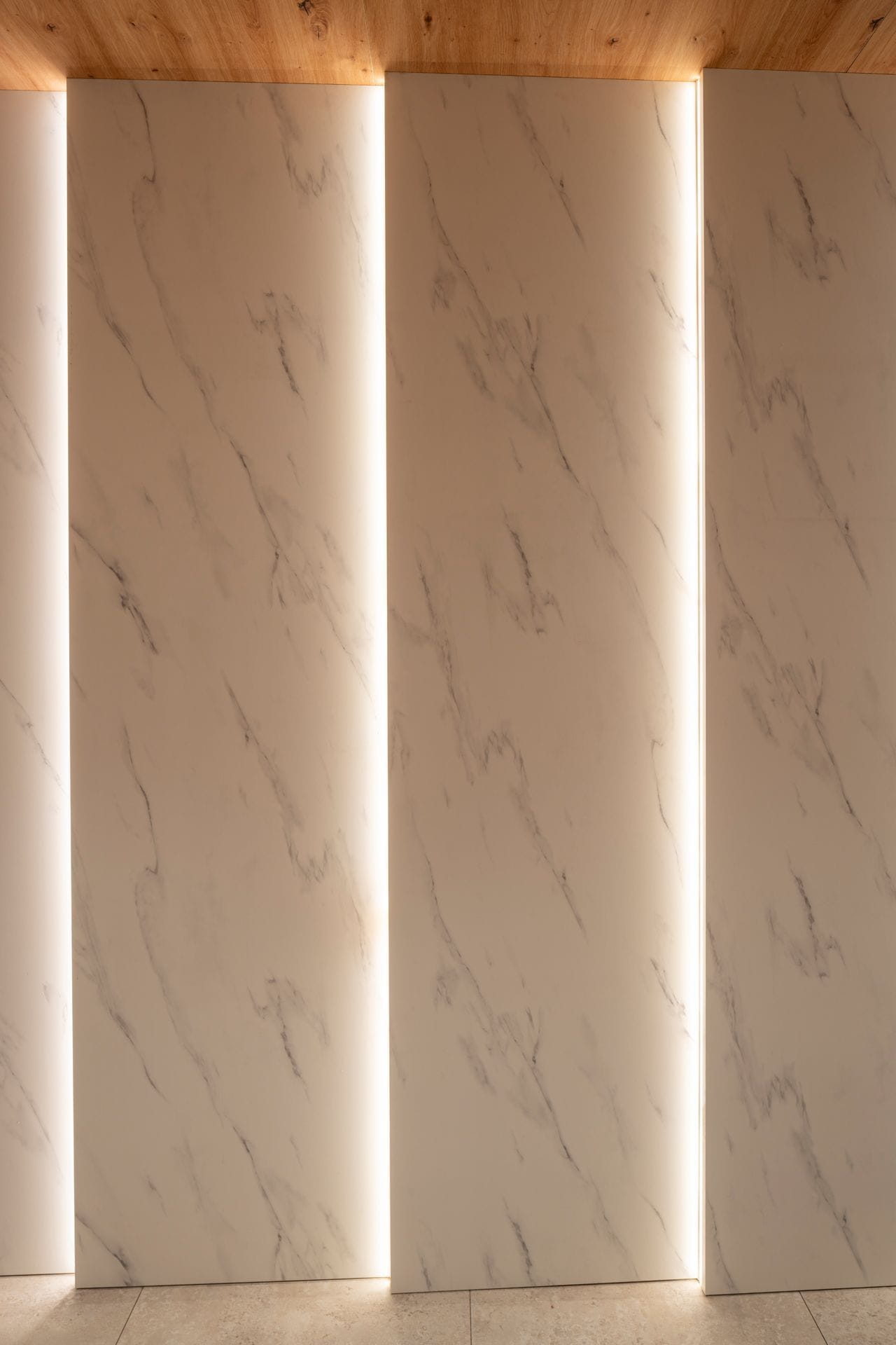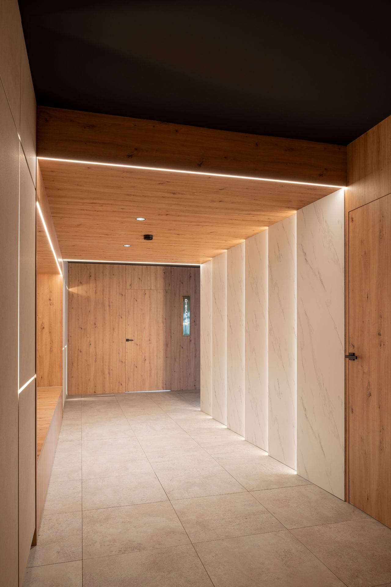 - Creation of a distinctive welcome area using backlit decorative panels, adding sophistication and character to the main entrance.