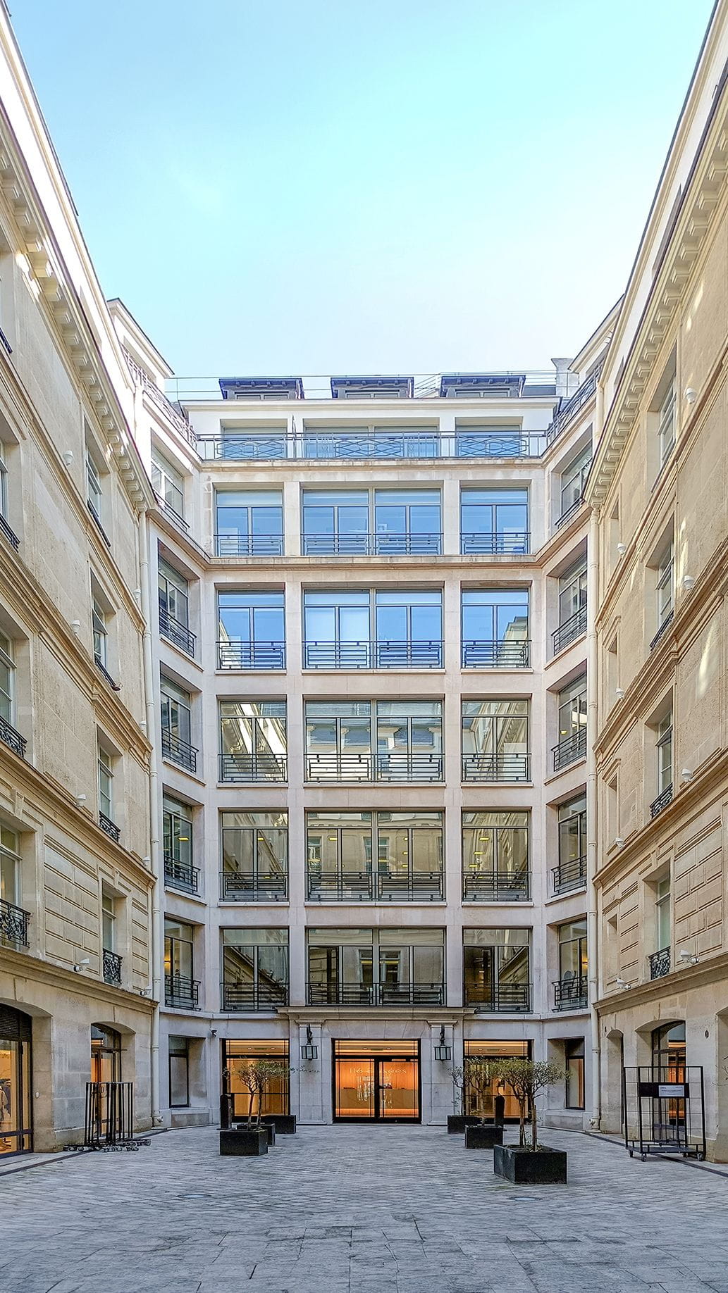 Renovation of the façade of an iconic building located in the commercial heart of Paris, just a few metres from the Arc de Triomphe.