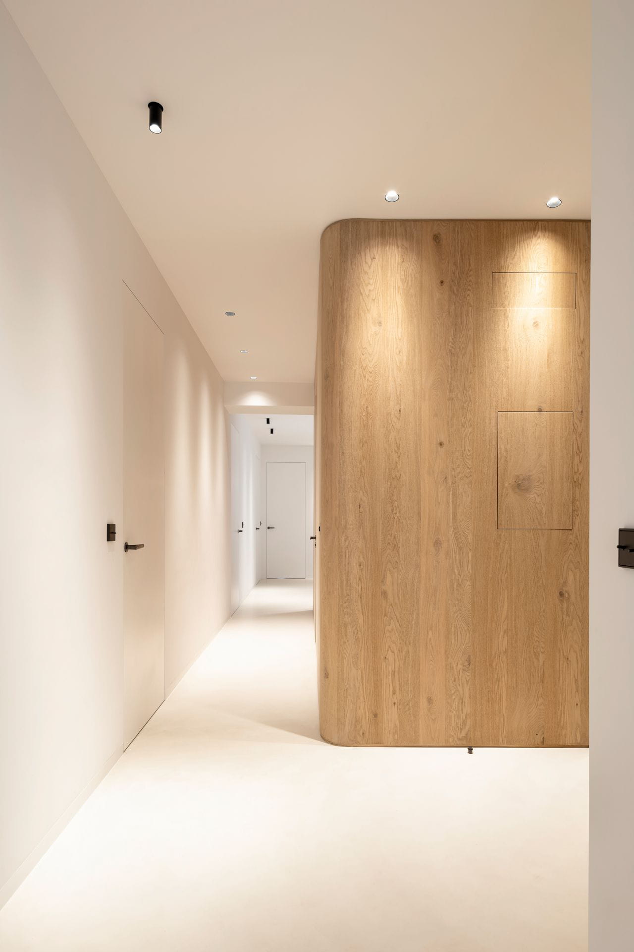 Quality, design and innovation are present down to the last detail through various cutting-edge solutions. The doors flush with the wall, blending in with it until they almost disappear, offering a unique and unmistakable appearance. Likewise, the flush-wall baseboards, the curved tiles and the microcement finishes provide the distinctive touch to this unique reform executed by INCOGA.