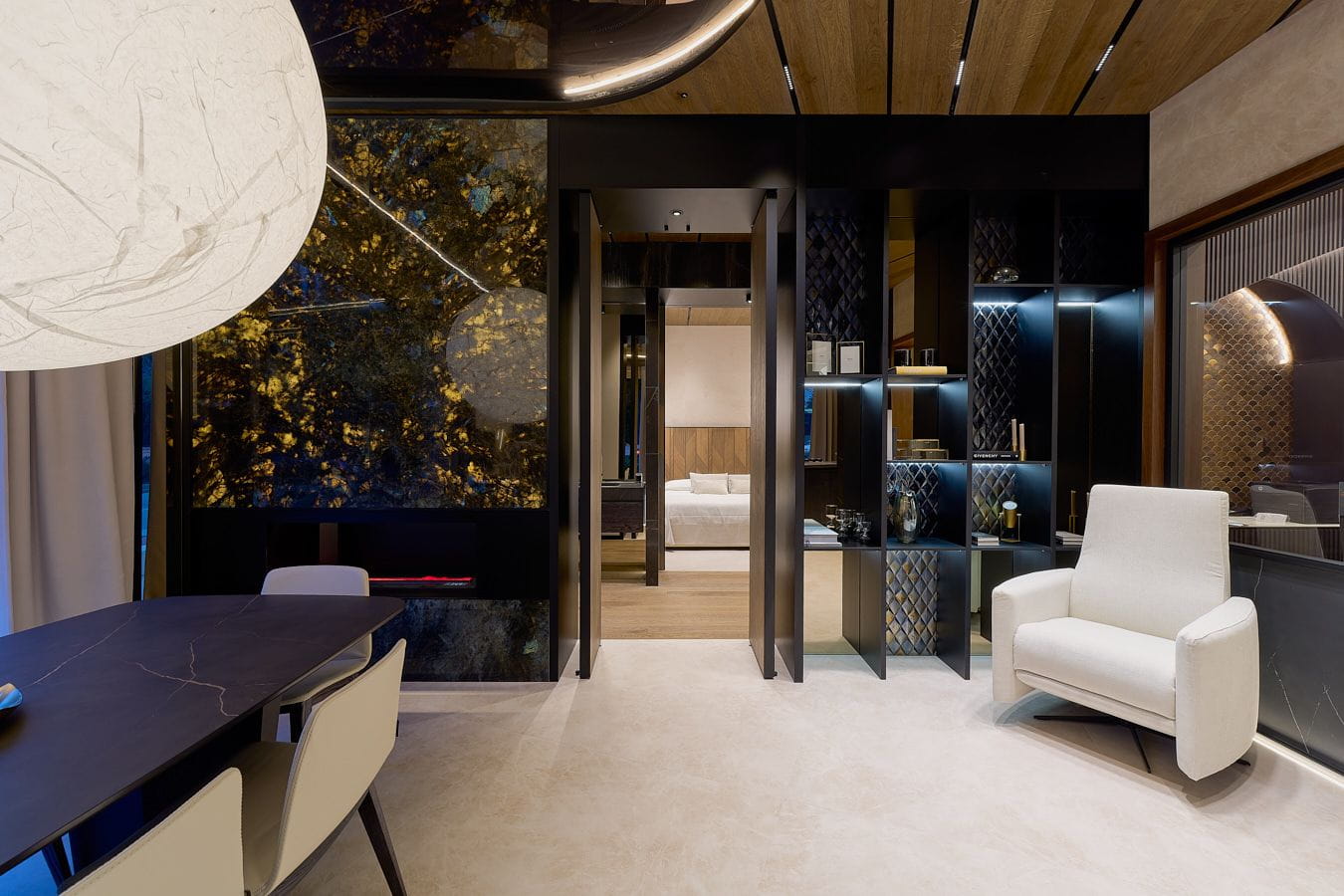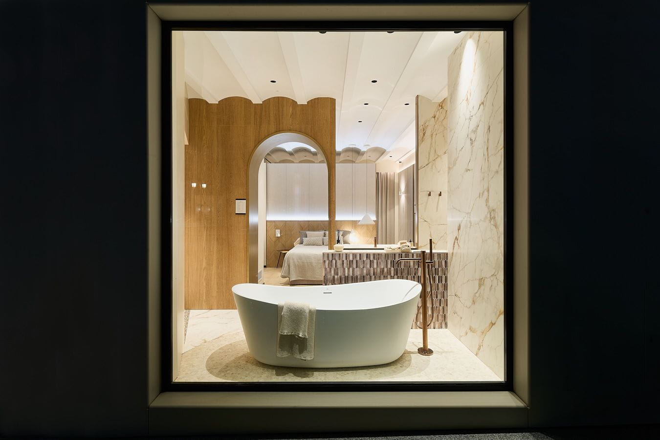 On the other hand, Colonial House, with its traditional style, has a warmer interior design. It features organic shapes and stone materials, perfectly harmonised with copper-finished accessories.