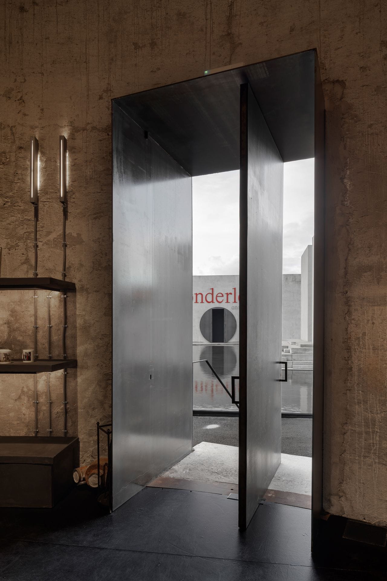 Inside, the execution of a unique exhibition support on which the works are displayed stands out. It is made of particle boards obtained from industrial fibre waste and certified under the Circular by Design seal. These panels have undergone a specific treatment that gives them an intentionally aged finish, in keeping with the aesthetics of the exhibition.