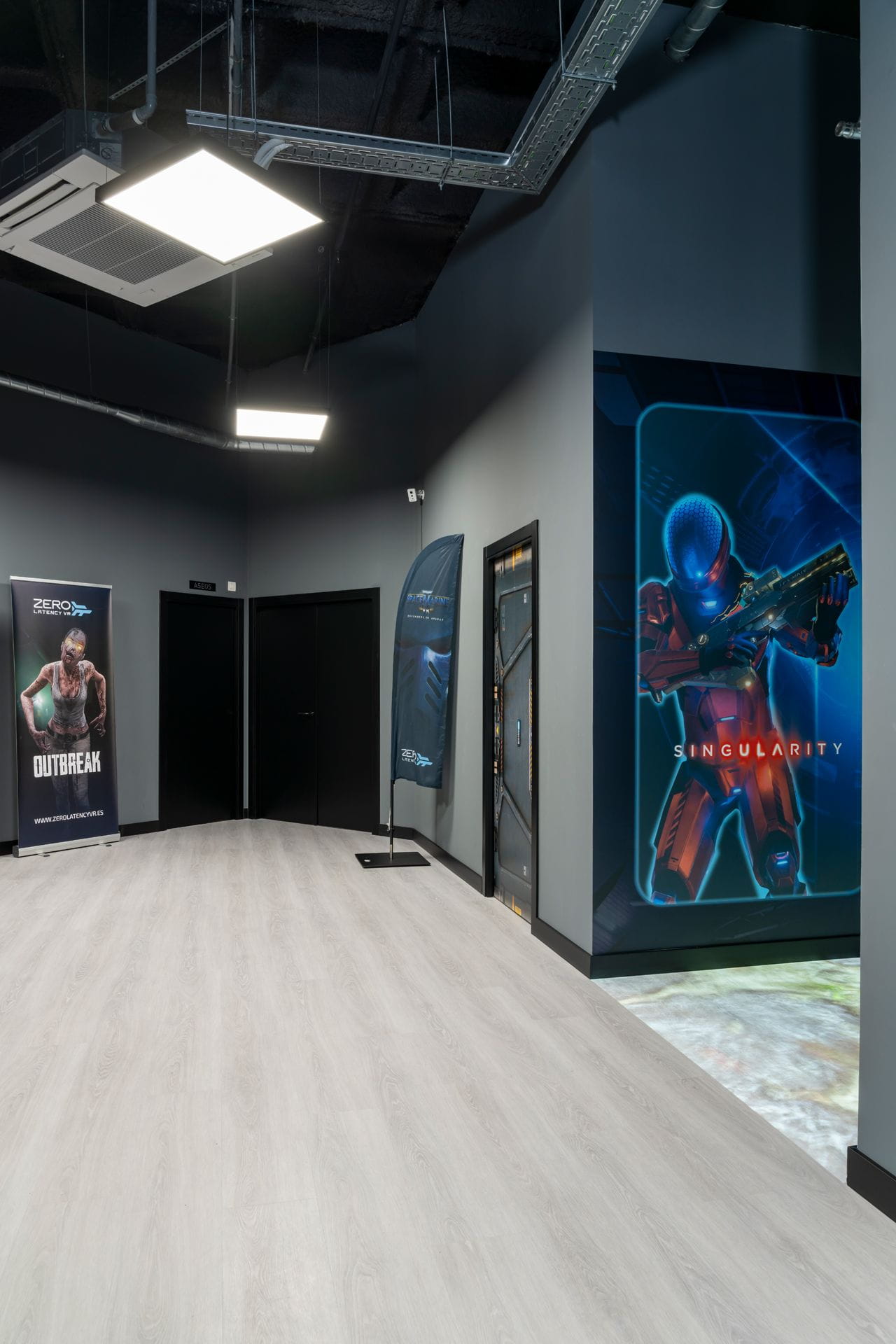 Comprehensive execution of Galicia's first immersive virtual reality leisure centre. Located in the innovative digital hub, Hi Coruña, Zero Latency has its own access and a surface area of 400 m2 in which to enjoy video games on another level, hold team-building activities and corporate events. This offering is complemented by a unique showroom with spectacular holographic devices that enable real-time telepresence.