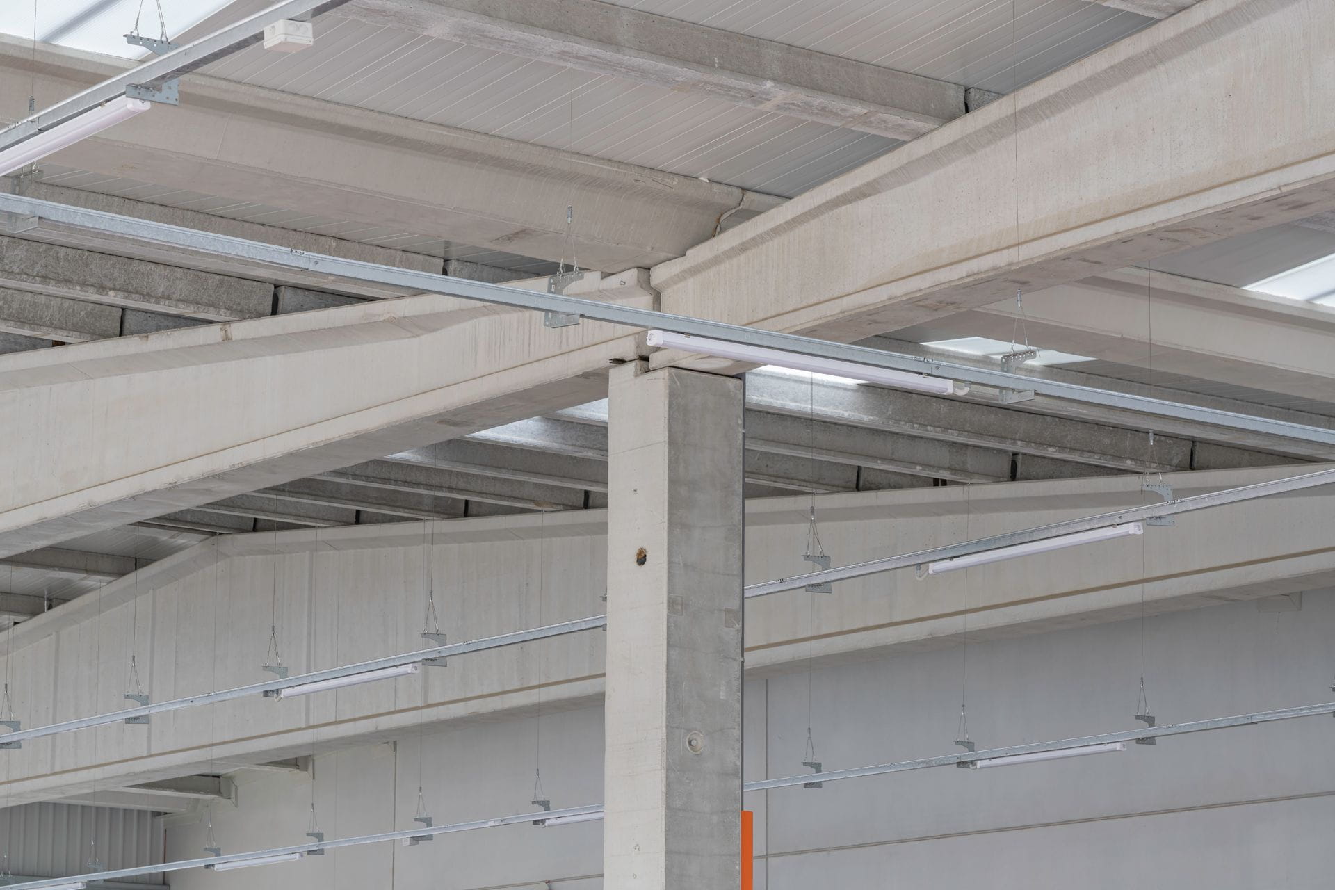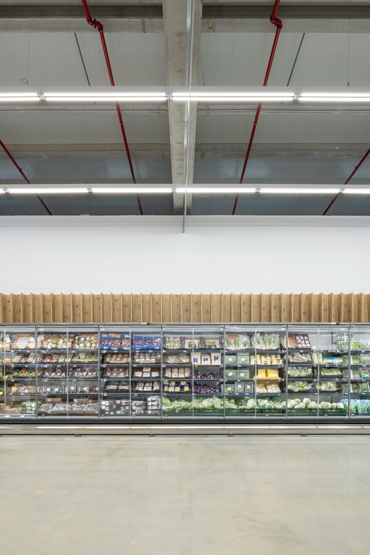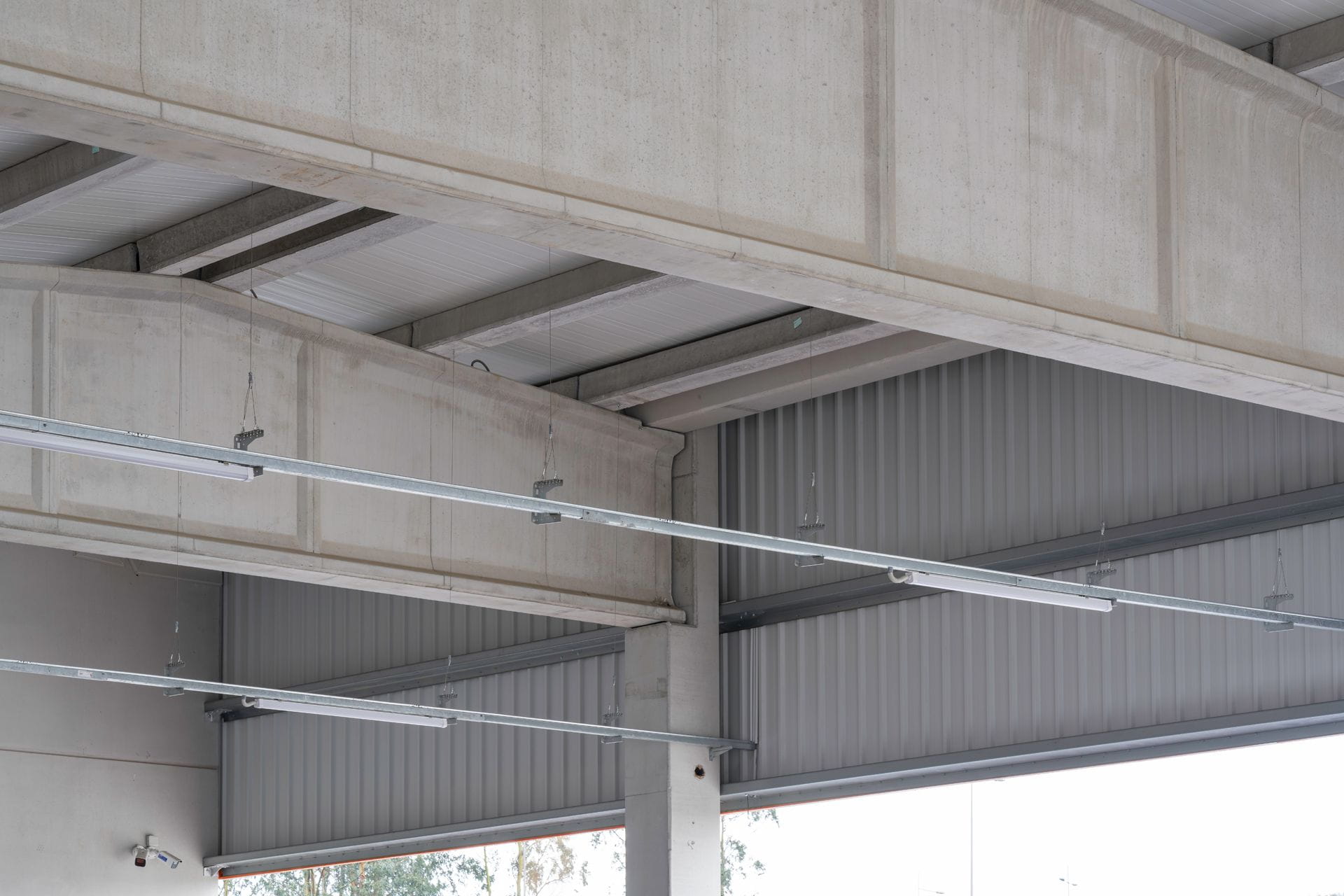 INCOGA a pris en charge la construction de l'ensemble, y compris les travaux d'aménagement extérieur. Le bâtiment, réparti sur deux étages, a été construit à partir d'éléments préfabriqués, avec une façade en béton apparent. À l'intérieur, des sols en béton poli et des solutions spécifiques pour les zones humides et les chambres froides ont été installés, garantissant la fonctionnalité et la durabilité de l'espace.