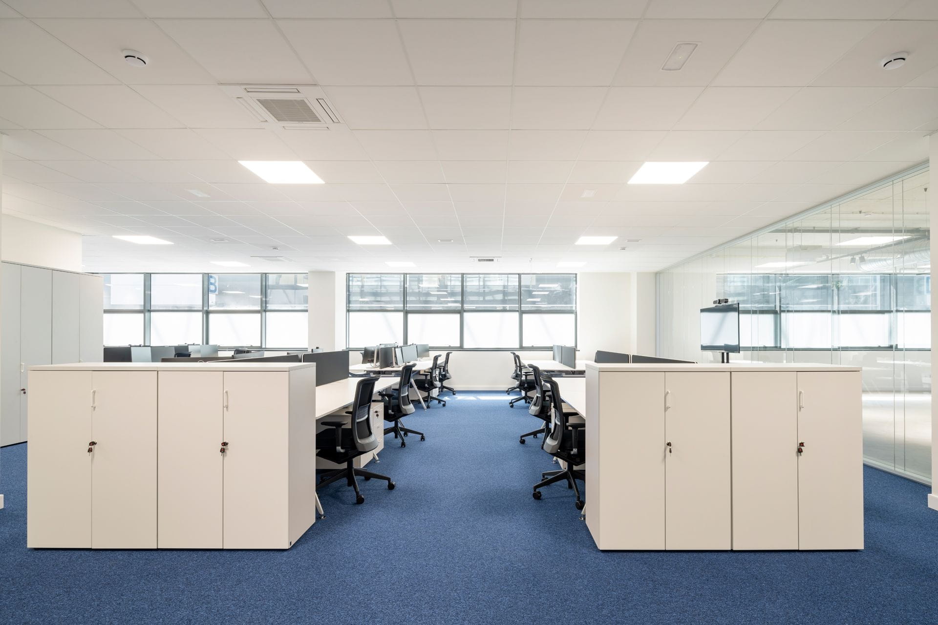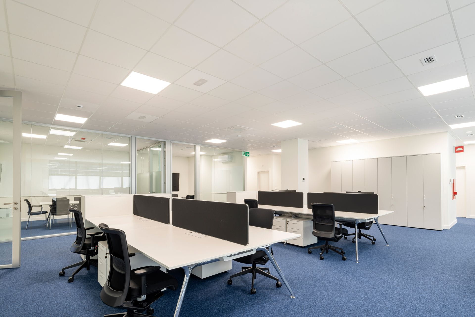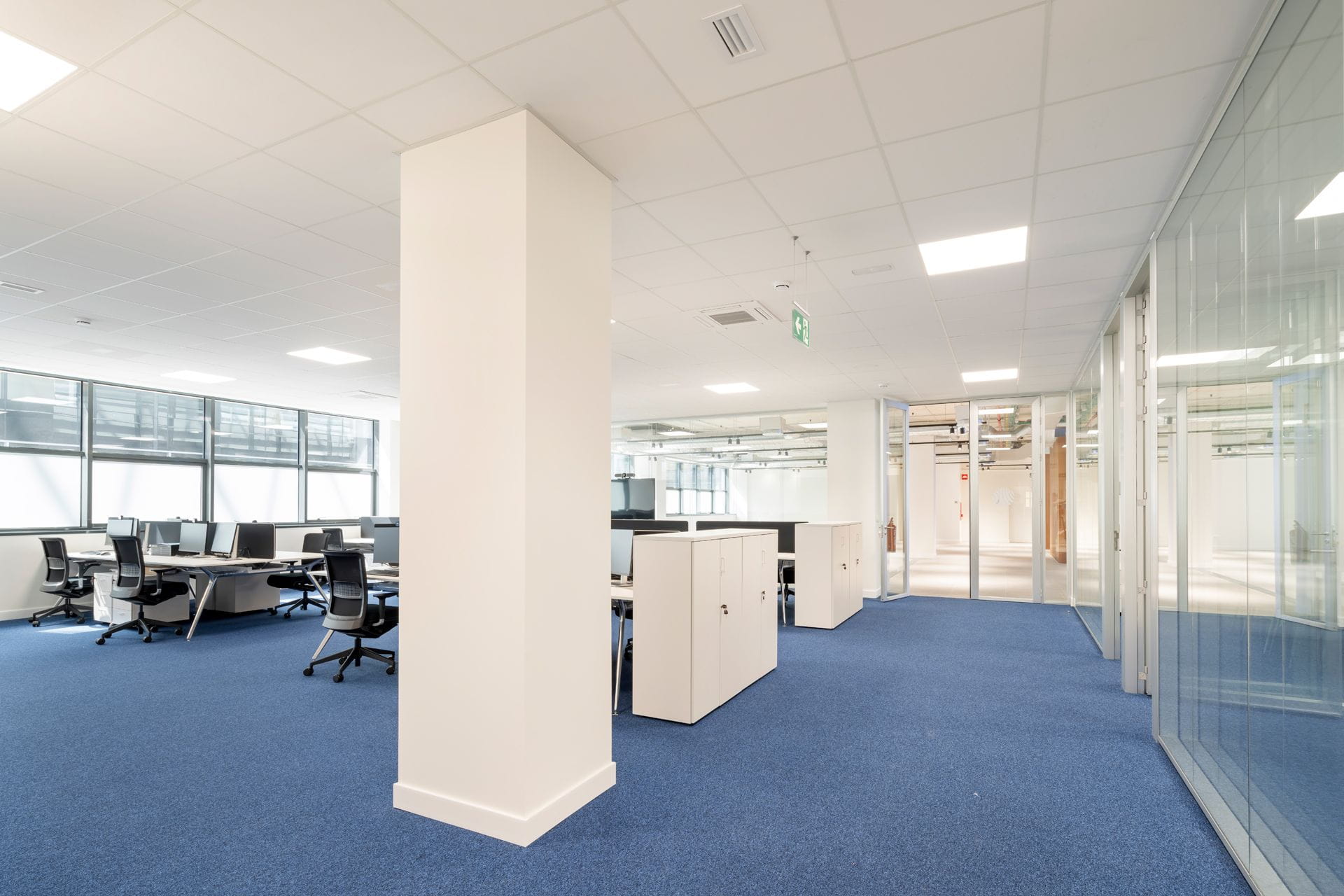 - Mise en place des installations électriques, de plomberie, de climatisation avec conduits apparents, de protection passive contre l'incendie, de données et de voix.